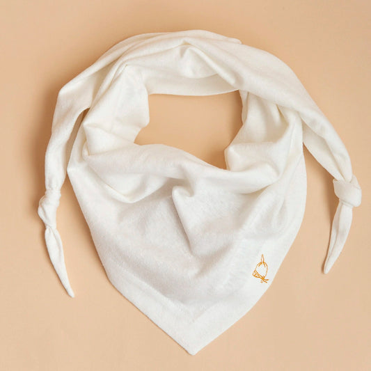 Kaklaskarė Skarulis su garstyčių spalvos siuvinėtu logotipu kraštelyje