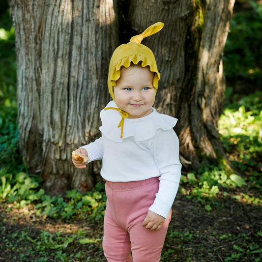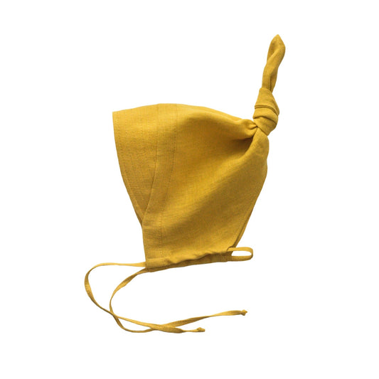 Geltona vienspalvė lininė kepurė Čiubas su raukiniu