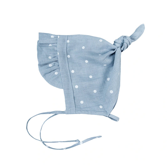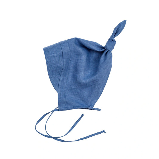 Mėlyna vienspalvė lininė kepurė Čiubas su raukiniu
