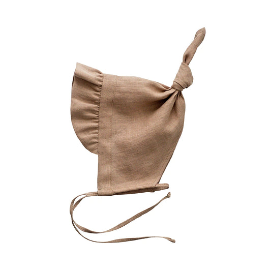 Ruda vienspalvė lininė kepurė Čiubas su raukiniu