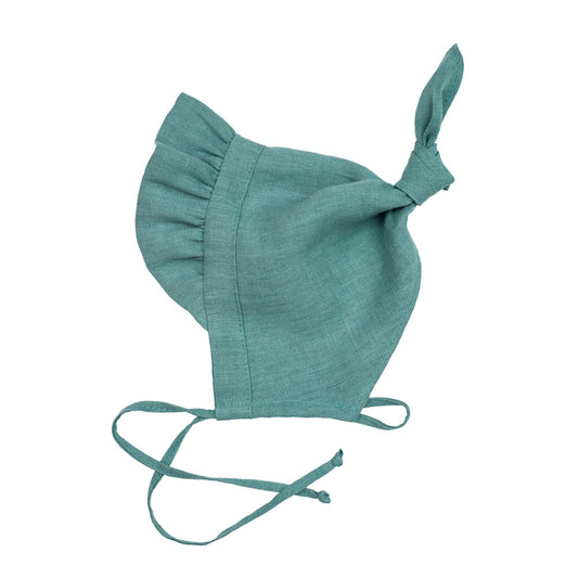 Žalia vienspalvė lininė kepurė Čiubas su raukiniu