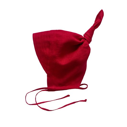 Raudona vienspalvė lininė kepurė Čiubas su raukiniu